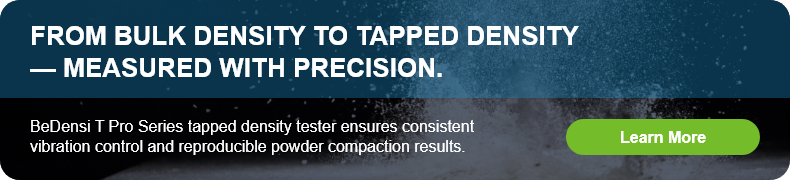 Bulk density refers to the mass of the bulk powder divided by the bulk volume. Bulk density can be calculated through the formula below: