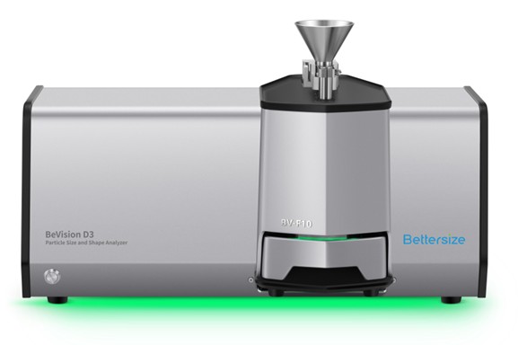 The BeVision D3 dynamic image particle size and shape analyzer equipped with the BV-F10 free fall dispersion unit was used to evaluate the particle size distribution (PSD) and morphological characteristics PET masterbatch samples.