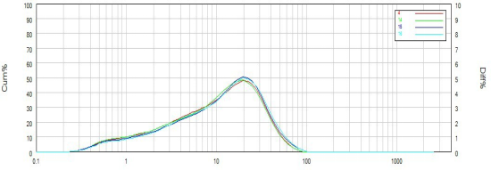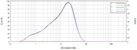 Figure 5. Particle size distribution and repeatability of 32.5 cement