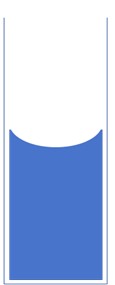 The meniscus is the curved surface that forms where the liquid meets the air and the glass wall of the vial, due to surface tension. In BeScan analysis, this is usually a concave meniscus, as illustrated below: